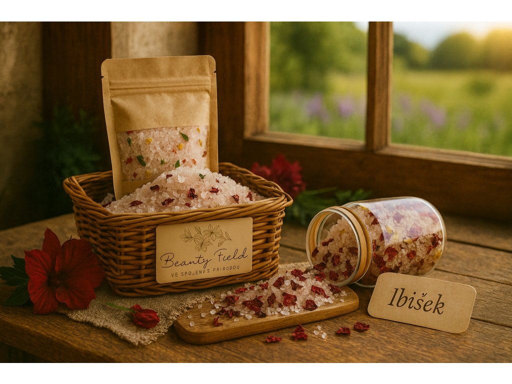 Ibiškový květ je známý svým vysokým obsahem antioxidantů, přírodních kyselin a vitamínů. V koupeli působí regeneračně, zklidňuje podrážděnou pokožku, podporuje její hydrataci a přispívá k hladšímu a pružnějšímu vzhledu.Zahalte se do květinové vůně ibišku a užijte si koupel, která revitalizuje tělo i mysl. Minerální směs s ibiškovým květem podporuje hydrataci, jemnou exfoliaci a krásně rozjasněnou pokožku
